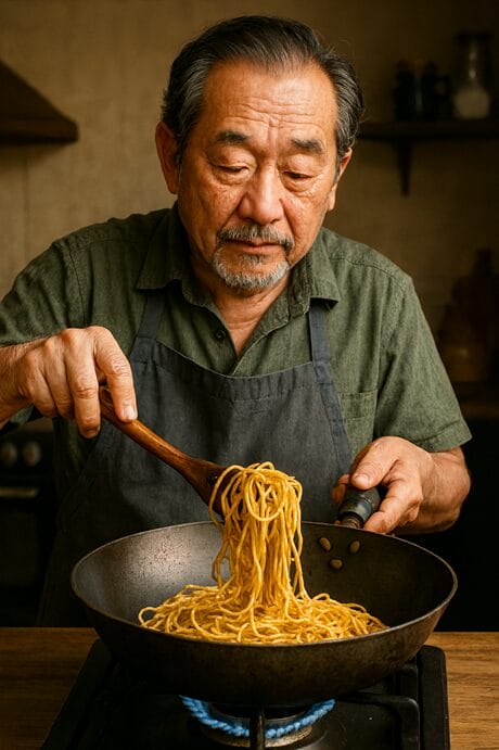 Not retirement. Not hobbies. Not yoga for seniors. Just frying noodles until either the gas runs out or the organs do.